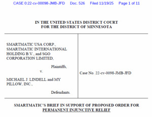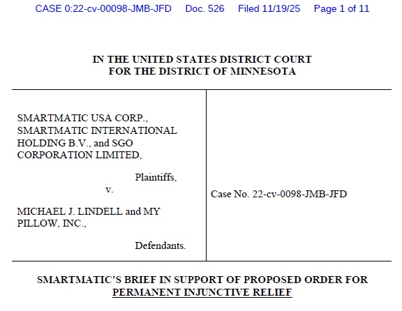 The U.S. District Court in Minnesota (Judge Magnuson) already granted a partial summary judgment against Mike Lindell and MyPillow, without